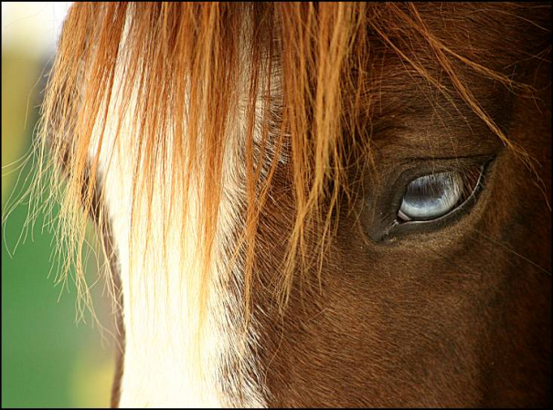 Le cheval a de grands yeux situés sur les côtés de la tête, qui lui permettent de regarder autour de lui sans tourner la tête.