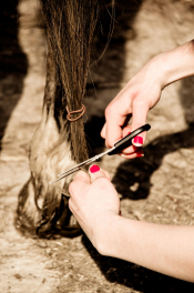 Dans tous les cas, il faut parfaitement démêler les crins et les couper en remontant légèrement vers le haut du côté des membres. En effet, quand le cheval reléve la queue en mouvement, le bas des crins devient horizontal.