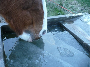 - l’eau des abreuvoirs peut geler, il faut alors veiller à casser la glace et y placer un ballon afin d’éviter qu’elle ne s’y reforme