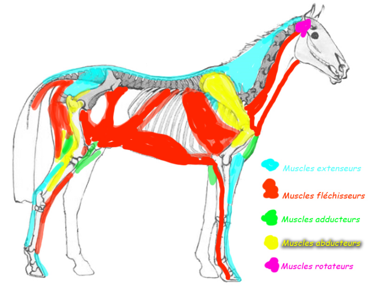 Les muscles, constitués de fibres, en se contractant et se décontractant permettent au corps de s'animer, se mouvoir et se déplacer, ainsi que de se tenir en position. La plupart des muscles s'attachent directement aux os ou y sont reliés par des tendons ou des ligaments.